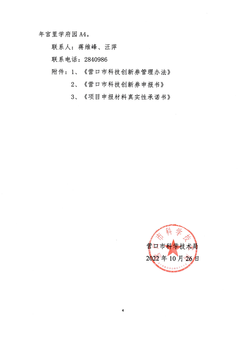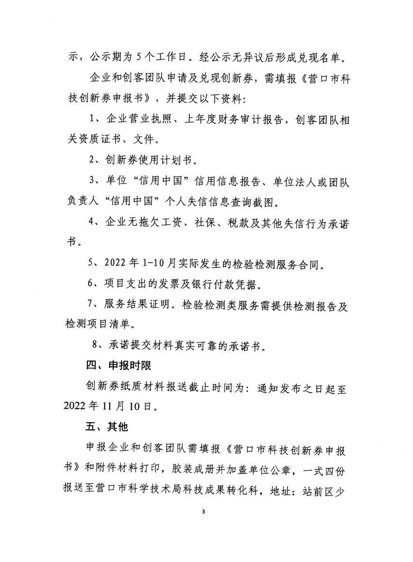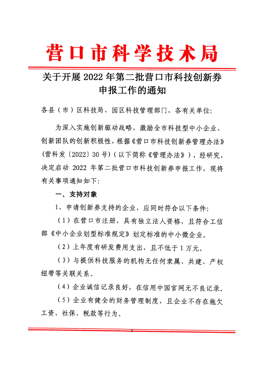 关于开展2022年第二批营口市科技创新券申报工作的通知