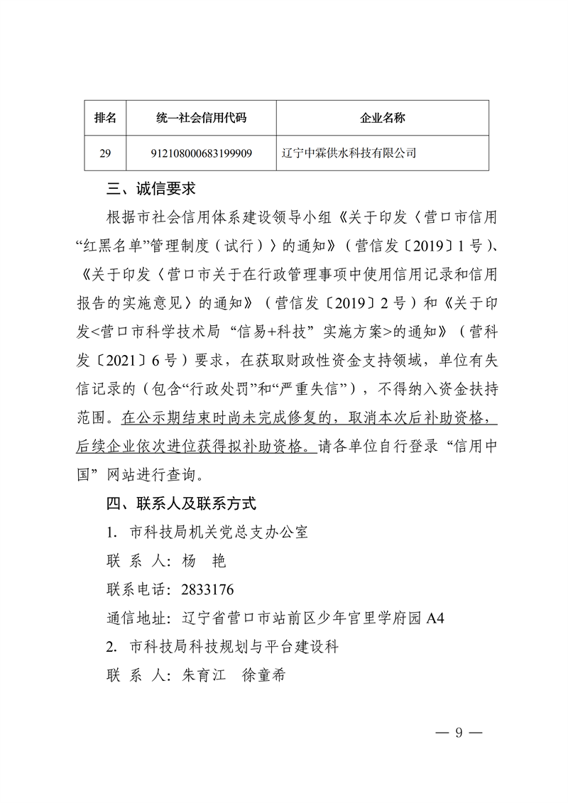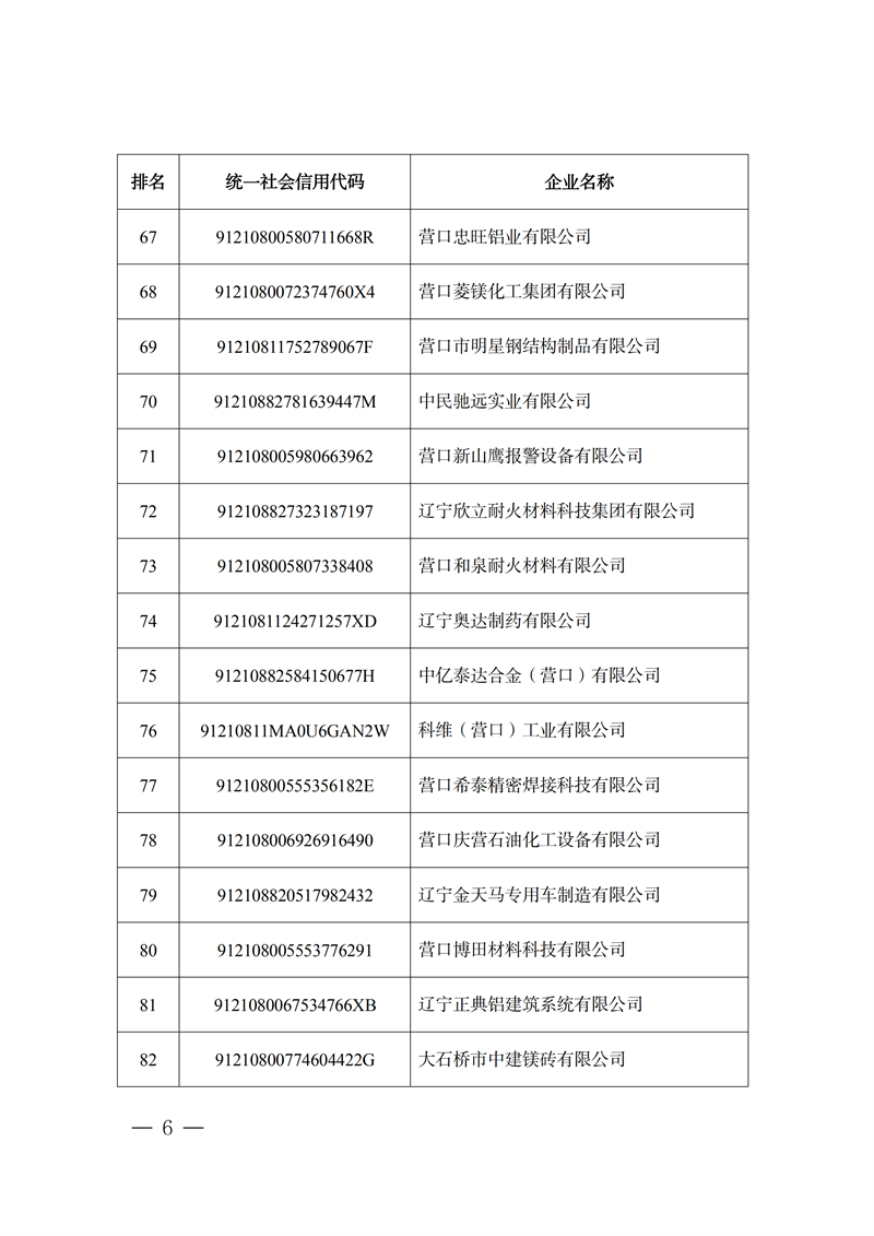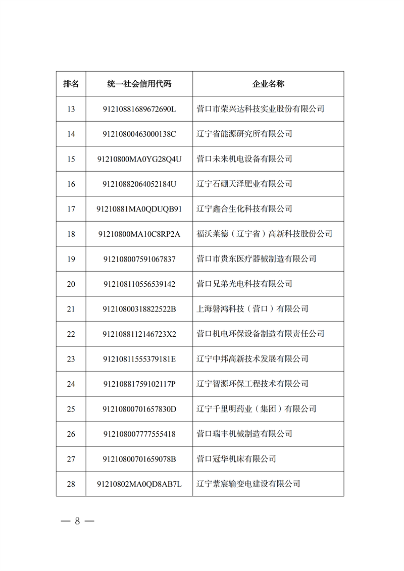关于2022年度营口市企业研发投入后补助部分企业排名的公示