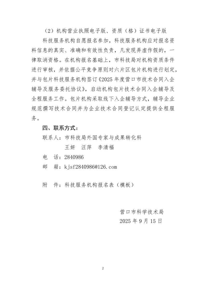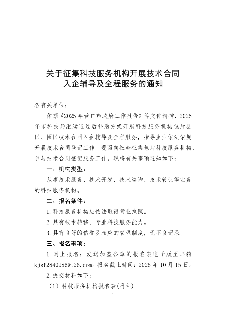 关于征集科技服务机构开展技术合同入企辅导及全程服务的通知
