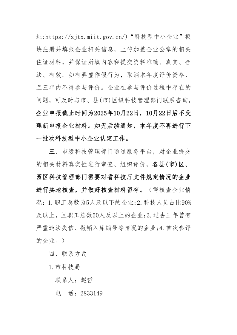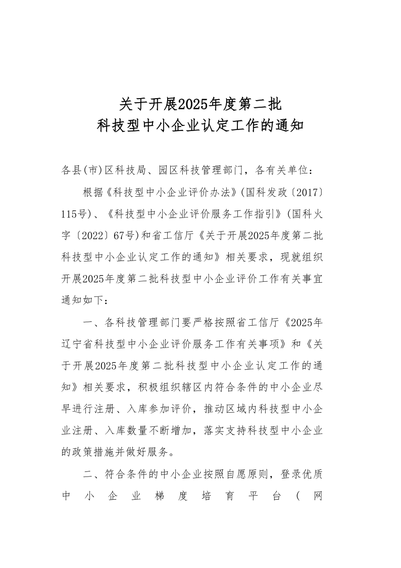 关于开展2025年度第二批科技型中小企业认定工作的通知