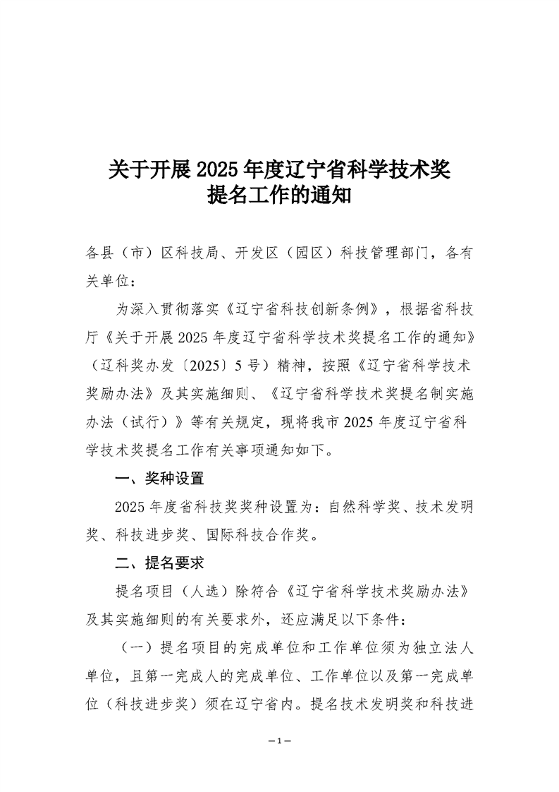 关于开展2025年度辽宁省科学技术奖提名工作的通知.pdf