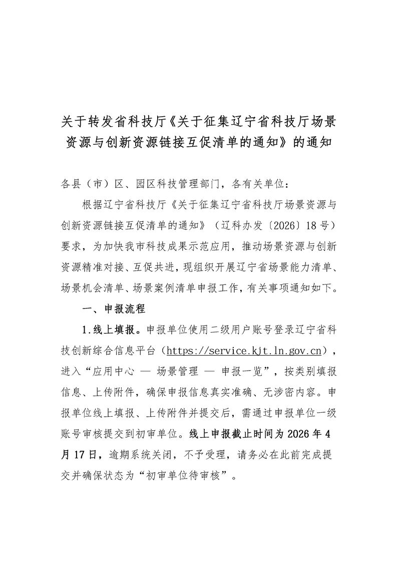 附件1:省科技厅关于征集辽宁省科技厅场景资源与创新资源链接互促清单的通知.pdf