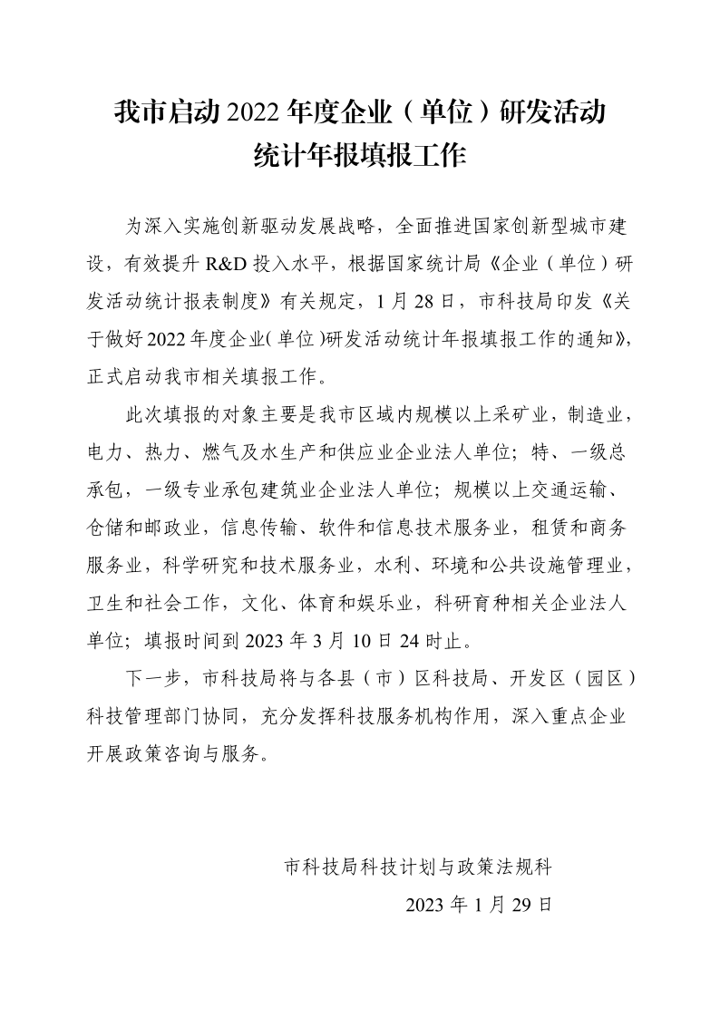 我市启动2022年度企业(单位)研发活动统计年报填报工作