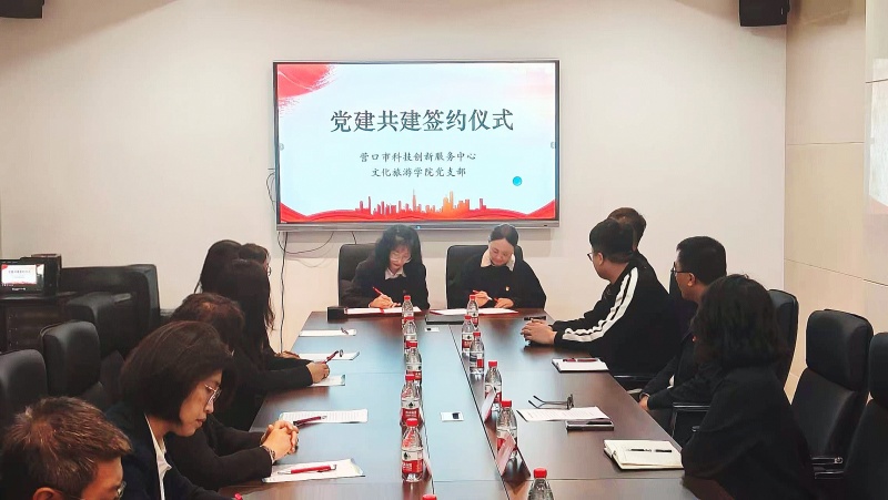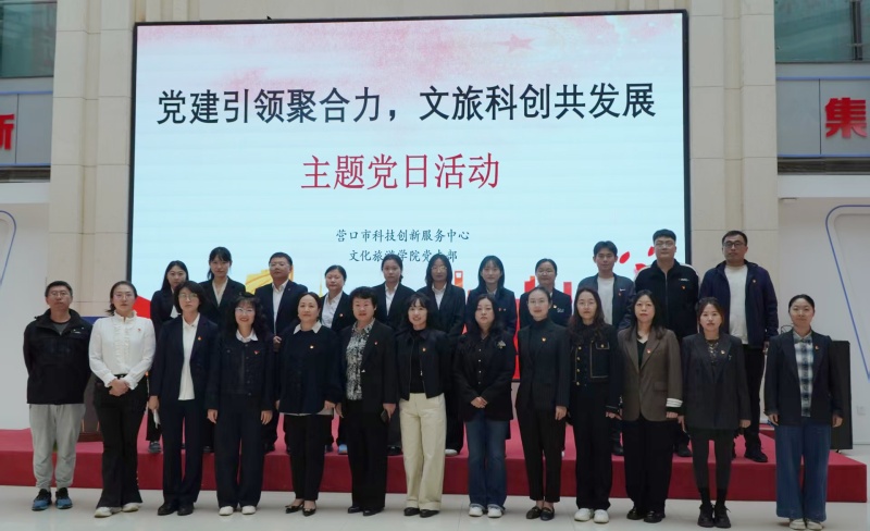2025年10月14日,营口市科技创新服务中心党支部与营口职业技术学院文化旅游学院党支部在营口市科技市场联合开展党建共建活动,以“党建引领聚合力,文旅科创共发展”为主题,通过签约仪式、重温入党誓词、实地参观等形式,推动党建与业务深度融合。