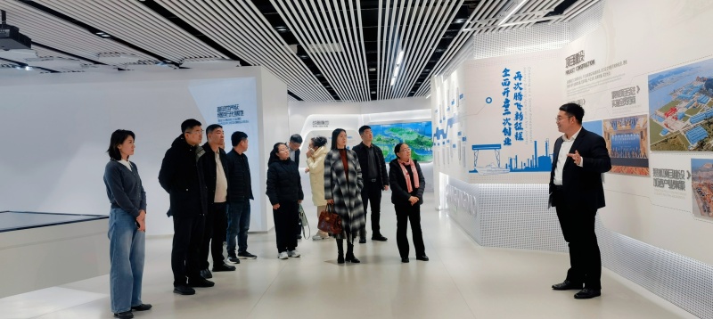 考察组一行首先参观了长兴岛洁净能源和精细化工中试基地展厅,详细了解长兴岛中试基地如何通过“科技成果转化四步法”,打造“从基础研究到中试验证到熟化加速再到产业承接”全生命周期与全产业链创新体系,构建涵盖分析检测、安环管理等环节的一站式全链条服务网络,为科技成果转化与产业升级奠定坚实基础。在产品展区,考察组直观了解了中试项目进展和运营情况,企业代表与基地负责人就产业发展趋势、前沿技术攻关、市场培育思路和学术成果产业化等内容进行详细交流。