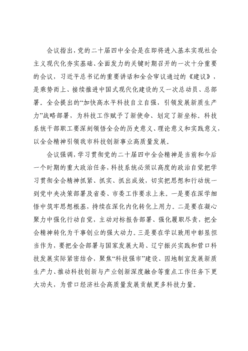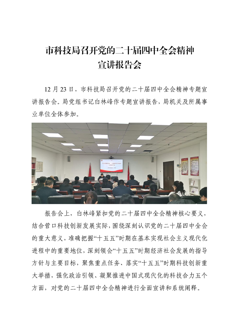 市科技局召开党的二十届四中全会精神宣讲报告会